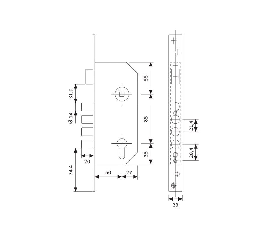 قفل الأمان أحادي النقطة R100B هو قفل مثالي للتركيب على أبواب